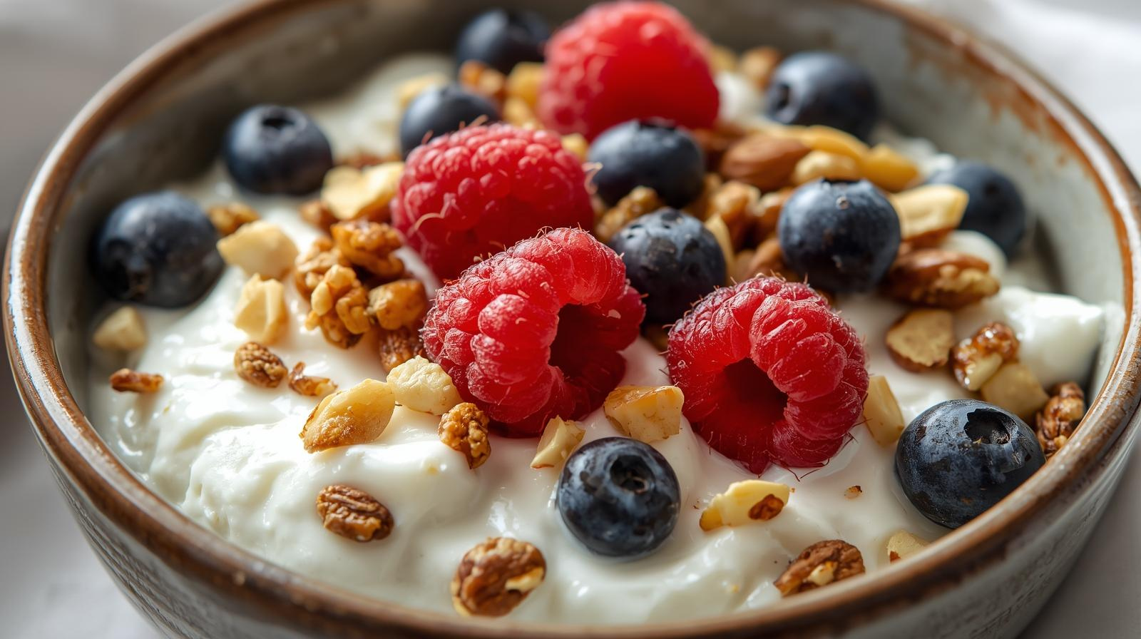 Yogurt griego con frutos rojos y nueces